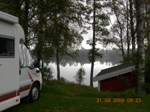 Bilden ovan är från Lovsjöns Camping som ligger innanför Statoilmacken, strax söder om Torsvik, Jönköping. Det är svårt att tänka sig in i hur riksomtalade lille Bobby kunde sänkas ner för att gömmas i denna sjö. Detta var helgen efter Husbilsmässan i Jönköping. Vi gästar normalt aldrig svenska campingplatser p.g.a. att vi alltid ”fricampar”. Denna gång var vi inbjudna av våra vänner i Husvagnsklubben Gemenskap där vi är medlemmar. Detta är verkligen Gemenskap med stort G. Vi var c:a 110 gäster runt festborden i Slättenkyrkan i Norrahammar på lördagskvällen. På söndags förmiddag deltog vi i gudstjänsten där även vår klubb medverkade med sång och musik, och en absolut fullsatt kyrka. Vår träff avslutades med kyrkkaffe. Ett stort tack till alla vänner i Jönköping för deras trevliga arrangemang.