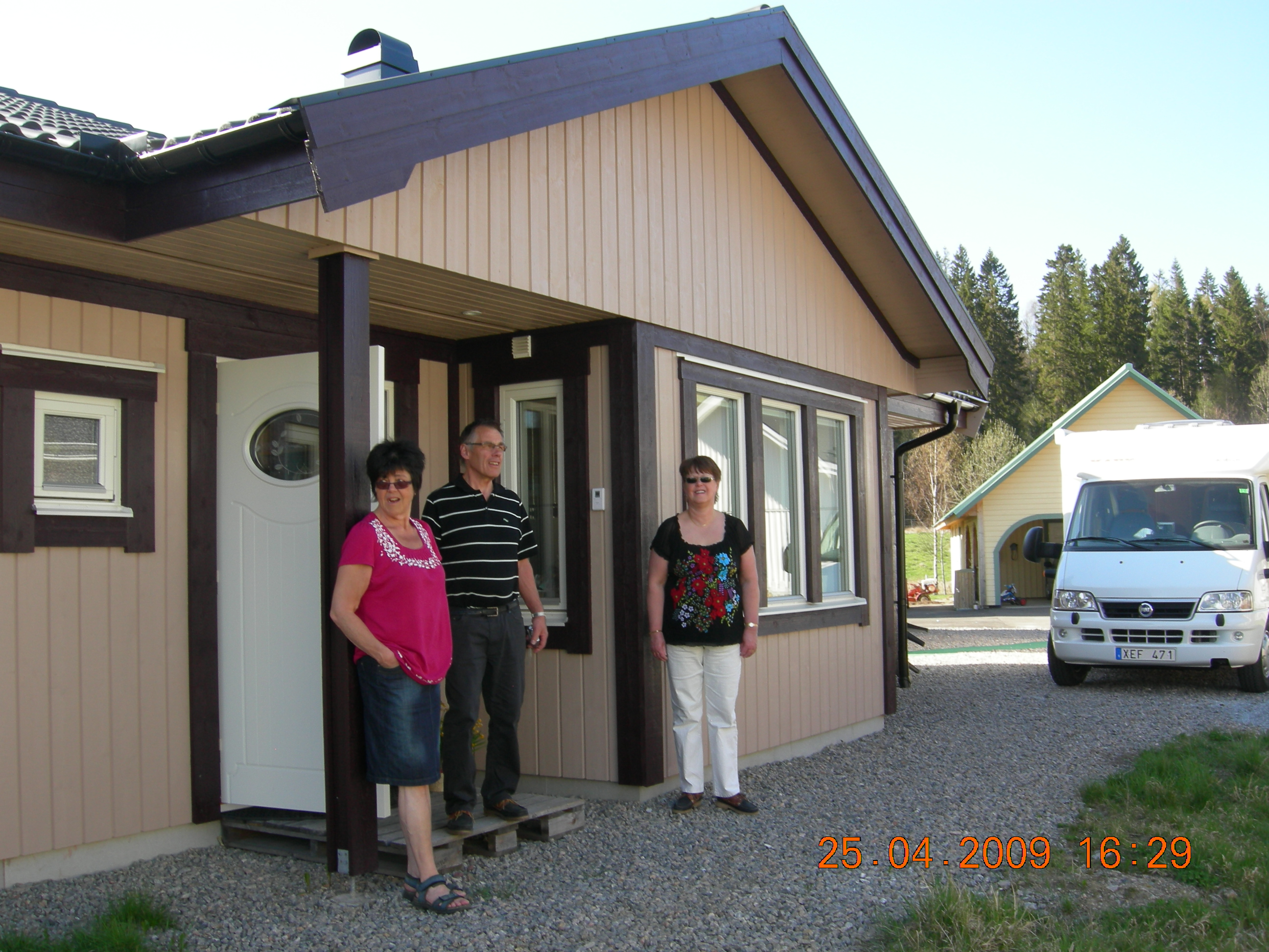 Här står Egon med fru Ann-Christin och välkomnar oss till sitt nya hus. Först tyckte jag nog att bygga nytt hus vid  gränsen till pensionen var tufft. Nu har vi också tänkt om, Birgitta & jag, tänk vad skönt att ha ett mindre hus än tidigare och allt är nytt och fräscht. Huset fick Med Beröm Godkänt. Som vanligt bjöds vi på ett överdåd av mat samt övernattning på tomten. All denna goda mat avkrävde ett ännu tuffare pass i motionsspåret vid hemkomsten. Vi, Birgitta och jag, vill på det varmaste önska Er lycka till och hoppas att ni får njuta av ert fina hus i många år framöver. Tack för allt det goda som serverades från ert nya fina kök och för gästfriheten och Tack för en riktigt trevlig helg tillsammans.