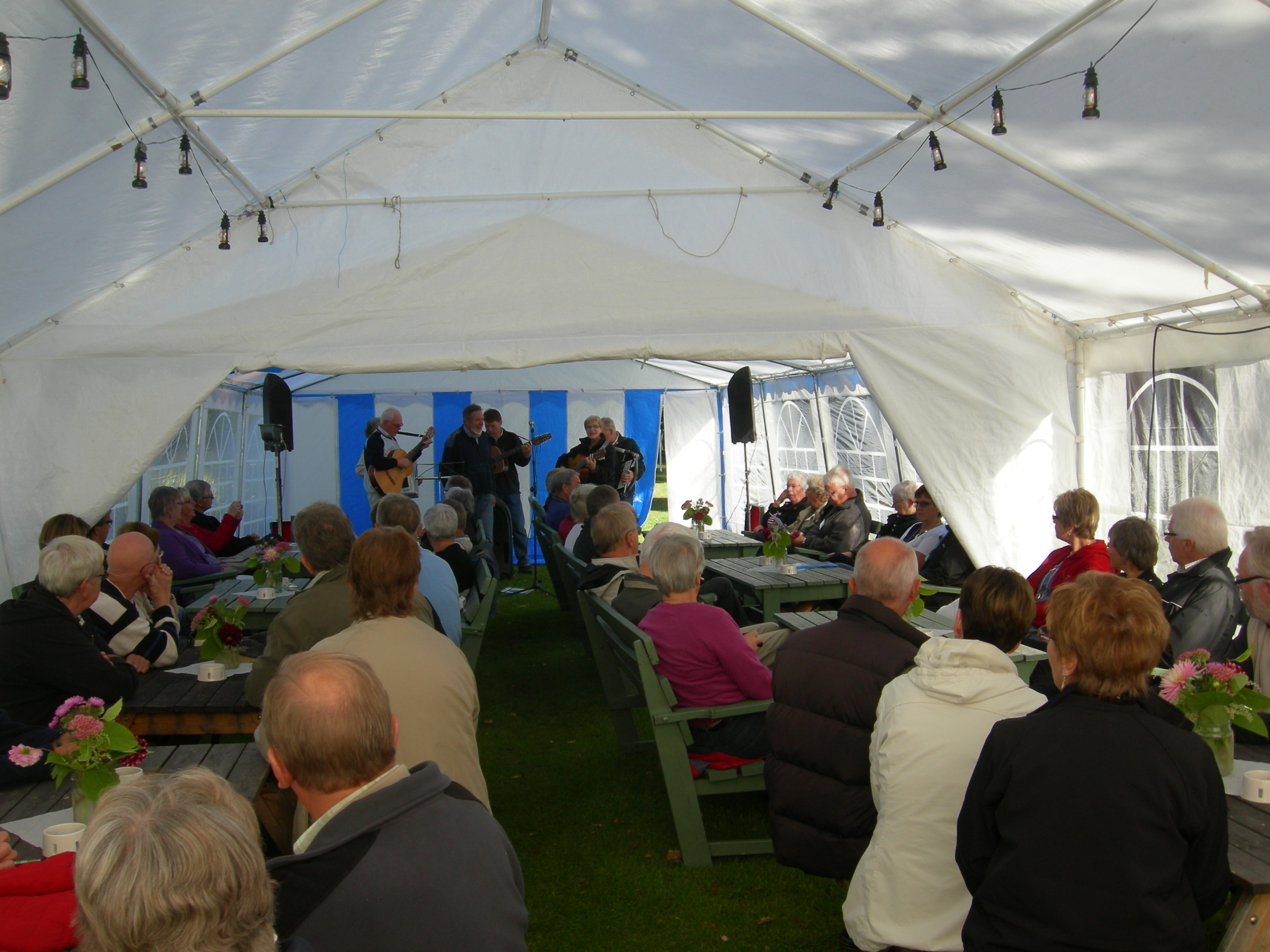 Här har vi morgonsamling i partytälten som våra vänner satt upp och ordnat att det blev varmt & gott. Värmen och gemenskapen sprider sig runt borden. Efter morgonsamlingen var det fria aktiviteter fram till kl. 17. Vi for tillsammans med några vänner in till Alingsås. Detta stadsbesök var en positiv överraskning.
