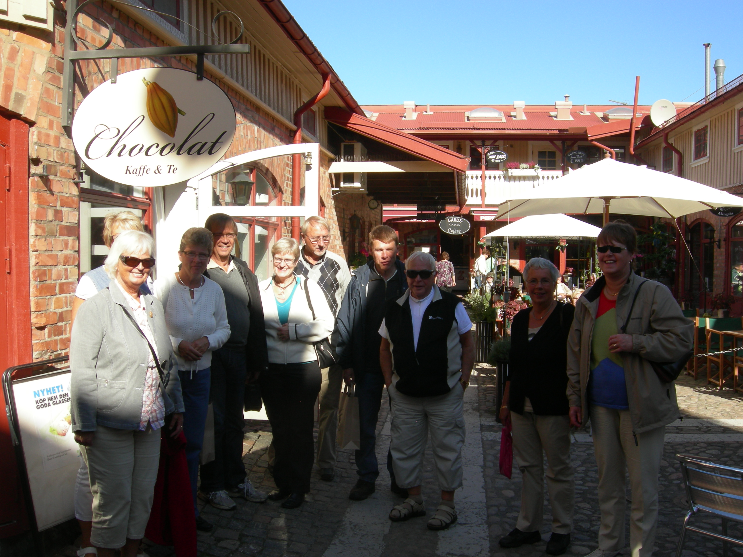 I centrum av Alingsås finns 150 butiker. Hur många caféer det finns vet jag inte. Men det var gårdscaféer vart man än vände sig. Ovan är ett av dem och vi var några stycken som fikade på innergården i ett härligt solsken.