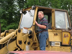 Christer har övertagit en hel entreprenadrörelse bestående av ett otal maskiner. Här visar han stolt upp sin Caterpiller.