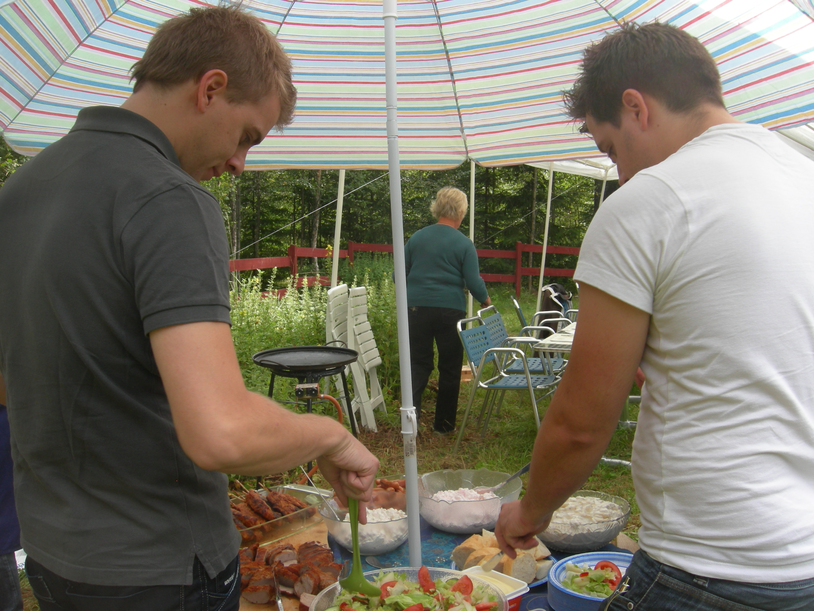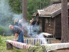 Nere i skogen vid en liten damm, som Christer byggt själv, serverades vi utsökt god mat.