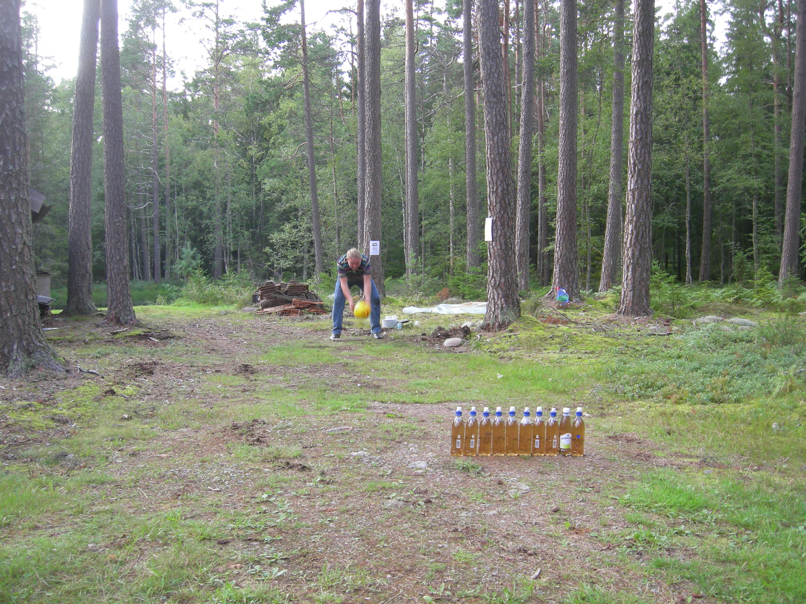 Här spelar vi ”skogsbowling”. Roligaste tävlingen var nog ändå, ”Tävla med Schenker att krossa minst porslin”.