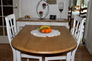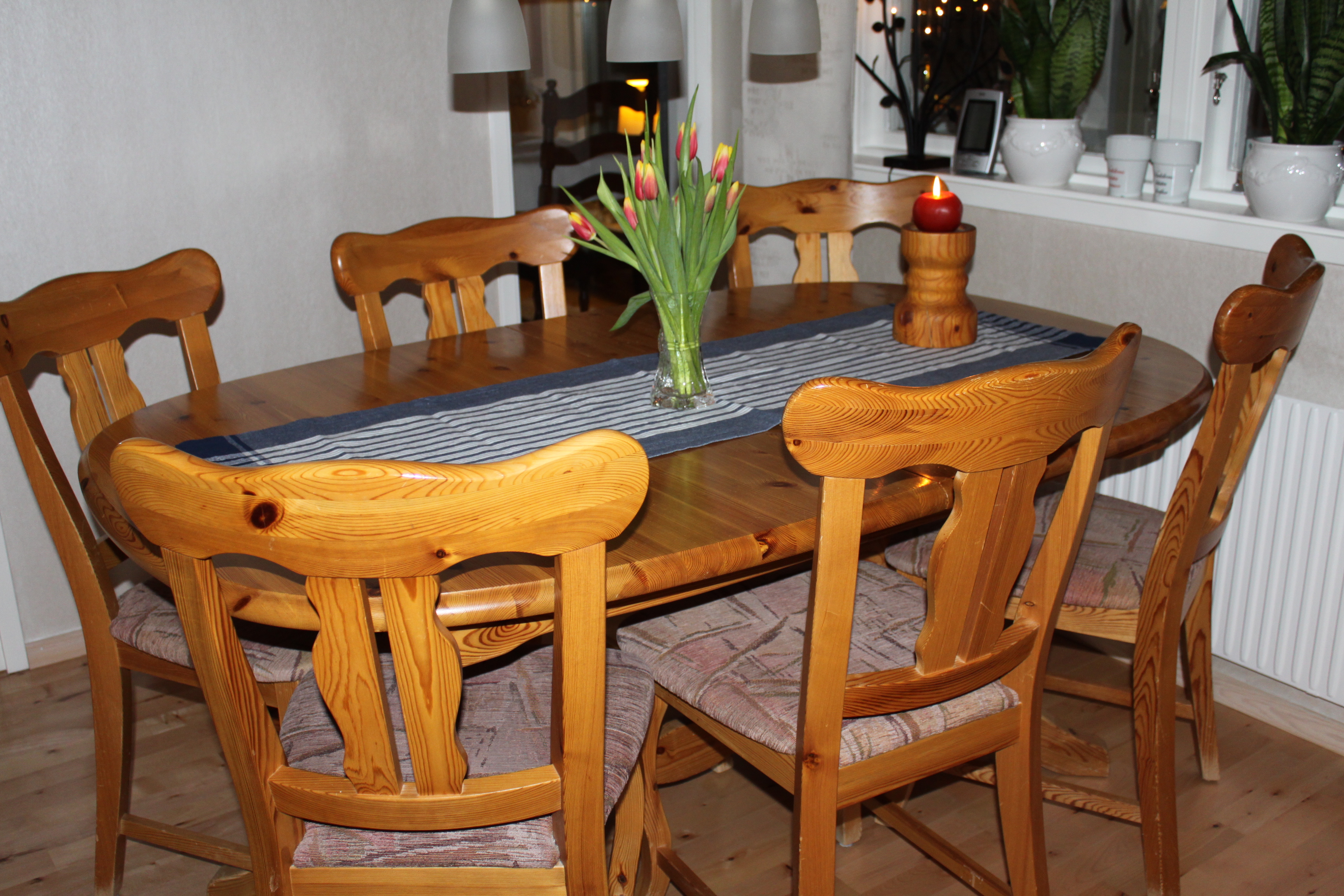 I dag gick vi till Fjordmarks Möbelaffär och köpte ett nytt mindre köksbord med bara 2 stolar. Det är mer än 15 år sedan barnen flyttade ut och vi har dessutom 2 ytterligare matgrupper att sitta vid. Det känns skönt att minska ned lite. Nu får vi se om någon på Blocket vill ha detta.