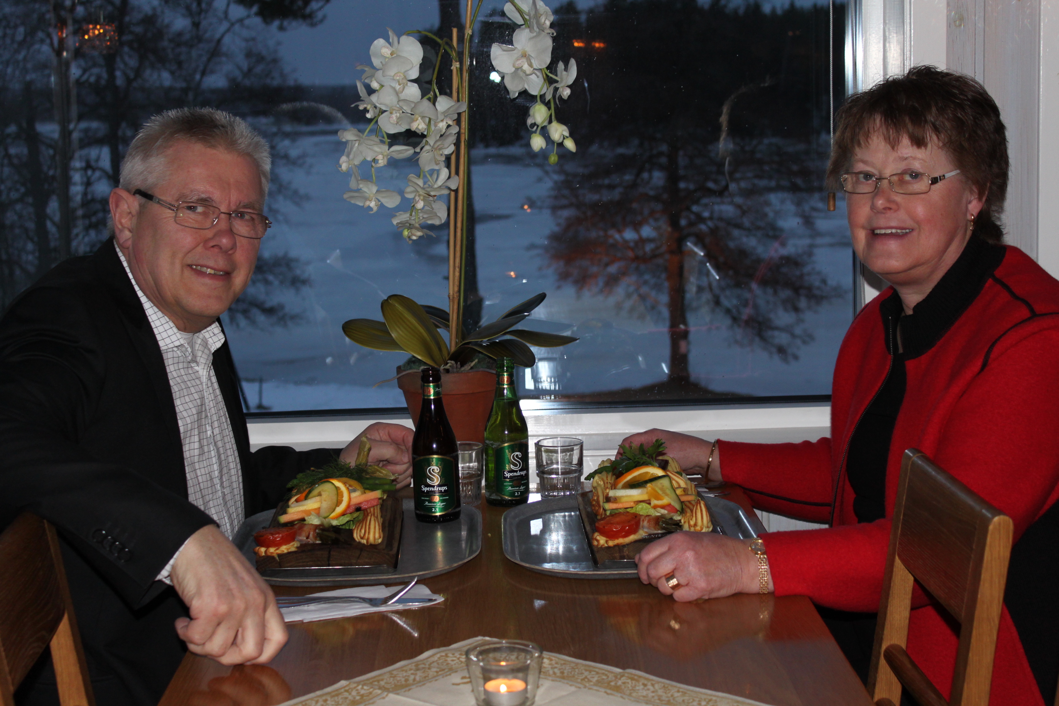 Nu har jag jobbat ett par lördagar med vårt Miljö- Kvalitétsarbete i företaget. Frampå lördagseftermiddagen sa jag till min Birgitta, nu är jag trött på detta, ”Får jag bjuda dig på bröllopsdags middag”? Det blev Sandsjöfors Wärdshus, som ligger mellan Eksjö och Sävsjö. Jag frågade min kära hustru, ”Klarar vi 40 år till”? ”Nej det blir nog svårt”, sa Birgitta.