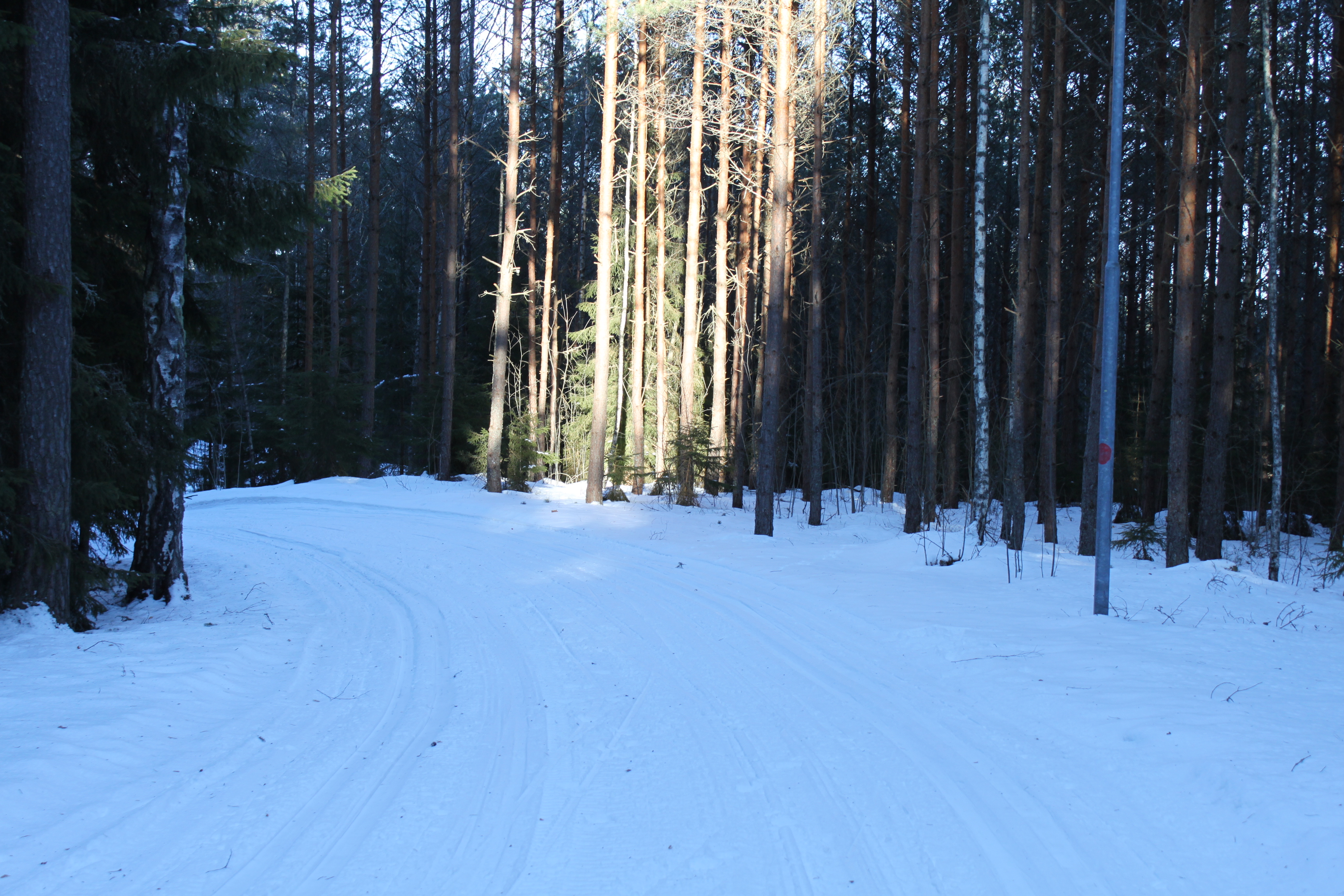 För många år sedan köpte jag vallningsfria skidor. Så länge jag åkte i skogen fram till elljuspåret gick det bra. Alla trärötter höll skidorna rena på undersidan. När jag kom ut på öppna fält var det två gröna spår  efter mig. Snön satt fast på skidorna. Jag skänkte dem till en Second Hand butik. Idag gick jag elljusspåret runt iförd min slalomdress. Tala om att jag blev kokt innanför kläderna. Det var ju trots allt bara 7-8 minusgader ute och härligt solsken. Den här kalla vintern har tagit hårt på konditionen. Ingen cykel till jobbet, inga timmar i skogen om söndagarna.
