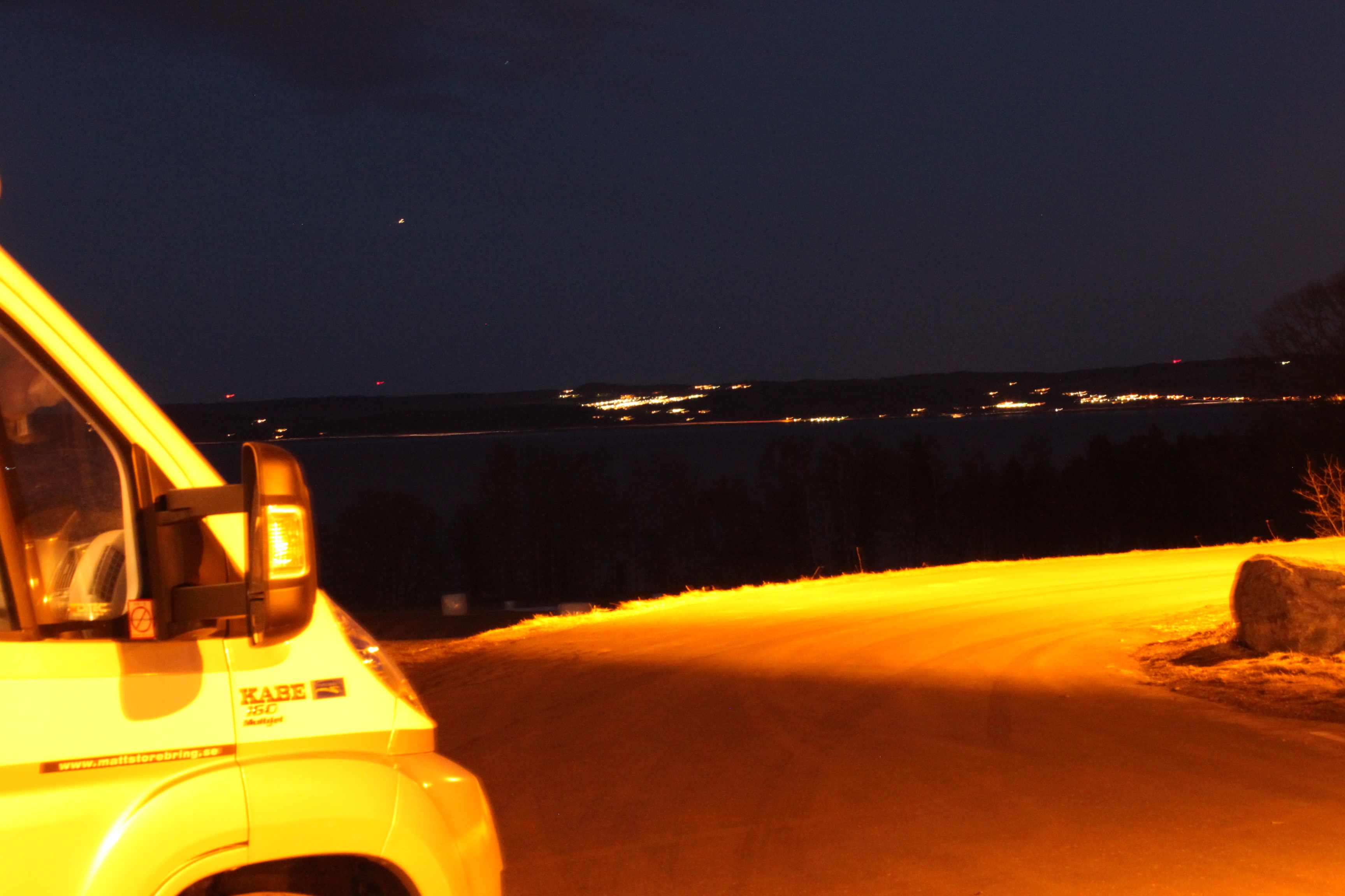… sa grannen, ”ni jobbar och sliter ute och inne och så kommer fredag kväll och då lämnar ni allting och bara far iväg”. Visst har han rätt, det är så vi kopplar av från ett hektiskt företagarliv. Denna fredag kväll har vi parkerat vid Västgöte Rastplats, strax utanför Habo. Ingen bra rastplats att sova på då det lutar åt alla håll, men vacker utsikt över Vättern. Målet i morgon lördag är Scandinavian Foto i Bankeryd. Vi har sms´at våra vänner Inger och Göran i Bankeryd, som vi inte träffaat sedan husvagnstiden, det vore kul om de är hemma, annars åker vi vidare till Hjo.
