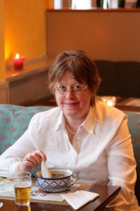 Inte konstigt att vägen hemma säger, ”En i taget”. Man måste njuta när man är ute och reser. Samtidigt tränar jag på mitt nyinköpta objektiv. Jag gick så långt bort jag kunde inne i Rådhuscaféet, men Birgitta kom inte med ändå. Kortet är taget på 6- 7 meters avstånd.