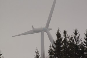 Bakom trädtopparna där vi står parkerade, snurrar den eviga kraften. Väl medveten om att så många ogillar dem, men det gör inte jag. Inget avfall, ingen nedsmutsning, bara ren grön el.
