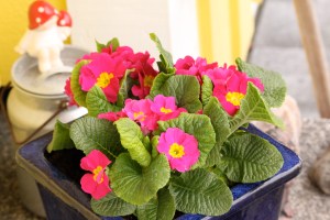 När vi kom hem från Gränna denna helg var all snö borta på tomten, isen på dammen var borta, fåglarna kvittrade och jag planterade årets första och enda kruka med några vackra Primula. Bakom blomkrukan står mjökkrukan, säkert 60 år gammal eller mera, som fylldes med hushållsmjölken ute i lagården hemma på 50- 60- talet.