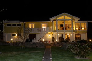 Lika påskgult som påskliljan, lyser vårt hus i kvällsmörkret. Detta var egentligen bara en testbild, men eftersom nästan alla kort tas i vintermörker vid juletid fick det komma med.