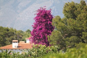 Först tror man inte det är sant att våra små krukväxter hemma, Bougenvila, växer här i trädgårdarna och blir säkert sju- åtta meter höga.