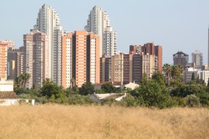 På vår resa in till Benidorm igår hade sett skyltar till Playa Levante. Där skall vara fin sandstrand, säger de spanjorer vi pratat med.  Benidorm är en liten prick på kartan, inte kunde vi drömma om att det var en storstad, eller rättare sagt en stor hotellstad.