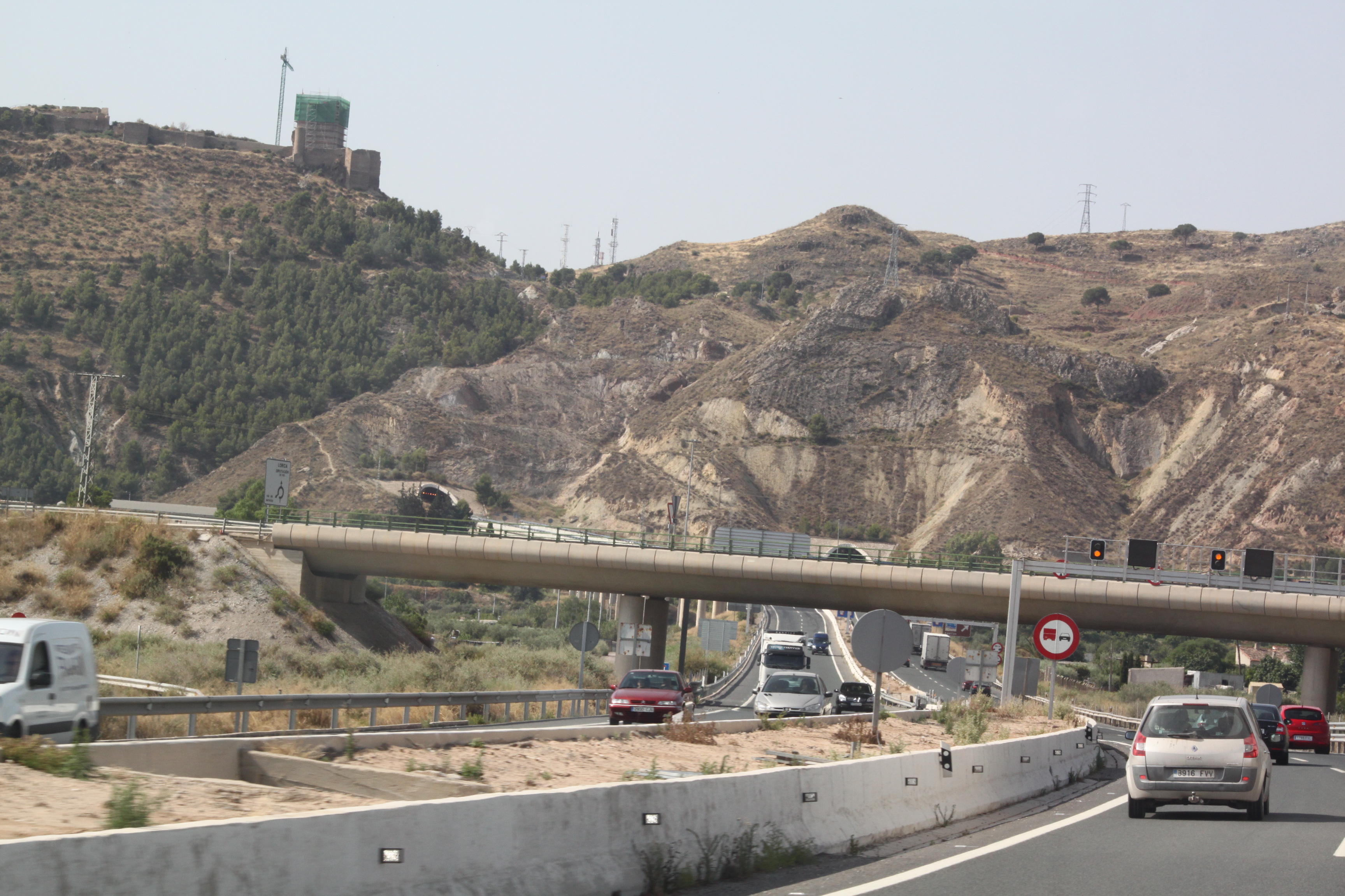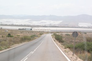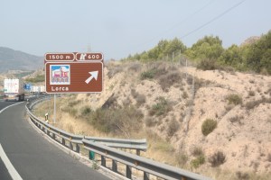 Här åker vi ett par mil från Lorca utanför staden Murcia. Det var här jordbävningen var i maj månad och 17 personer omkom. Vi märkte inte ett spår av detta.