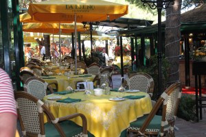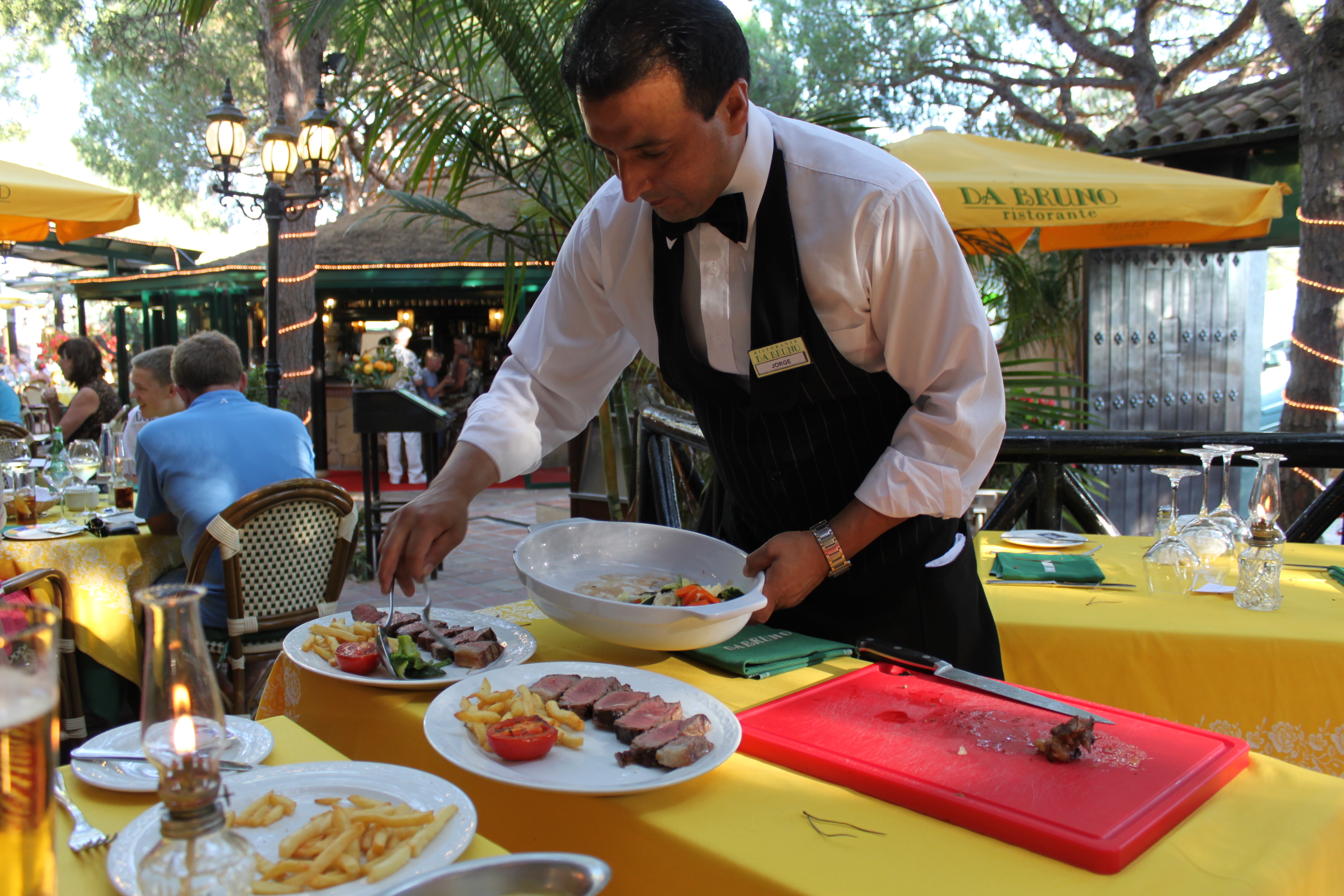 Här är Camping Cabopinos Restaurang. Sällan har jag sett en restaurang, där folk bara strömmar in hela tiden. Två restaurangvärdar hade fullt jobb hela tiden, med att placera gäster vid de massor av bord som var uppdukade. Hur många kypare som jobbade runt borden gick inte att räkna till. De flesta gästerna kom utifrån och var ovanligt välklädda.