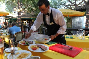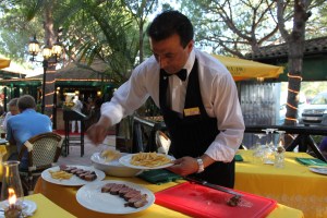 Så kom vår stora portion med kött…. Visst är de snygga de flesta spanjorer, mörka i håret och välklädda.