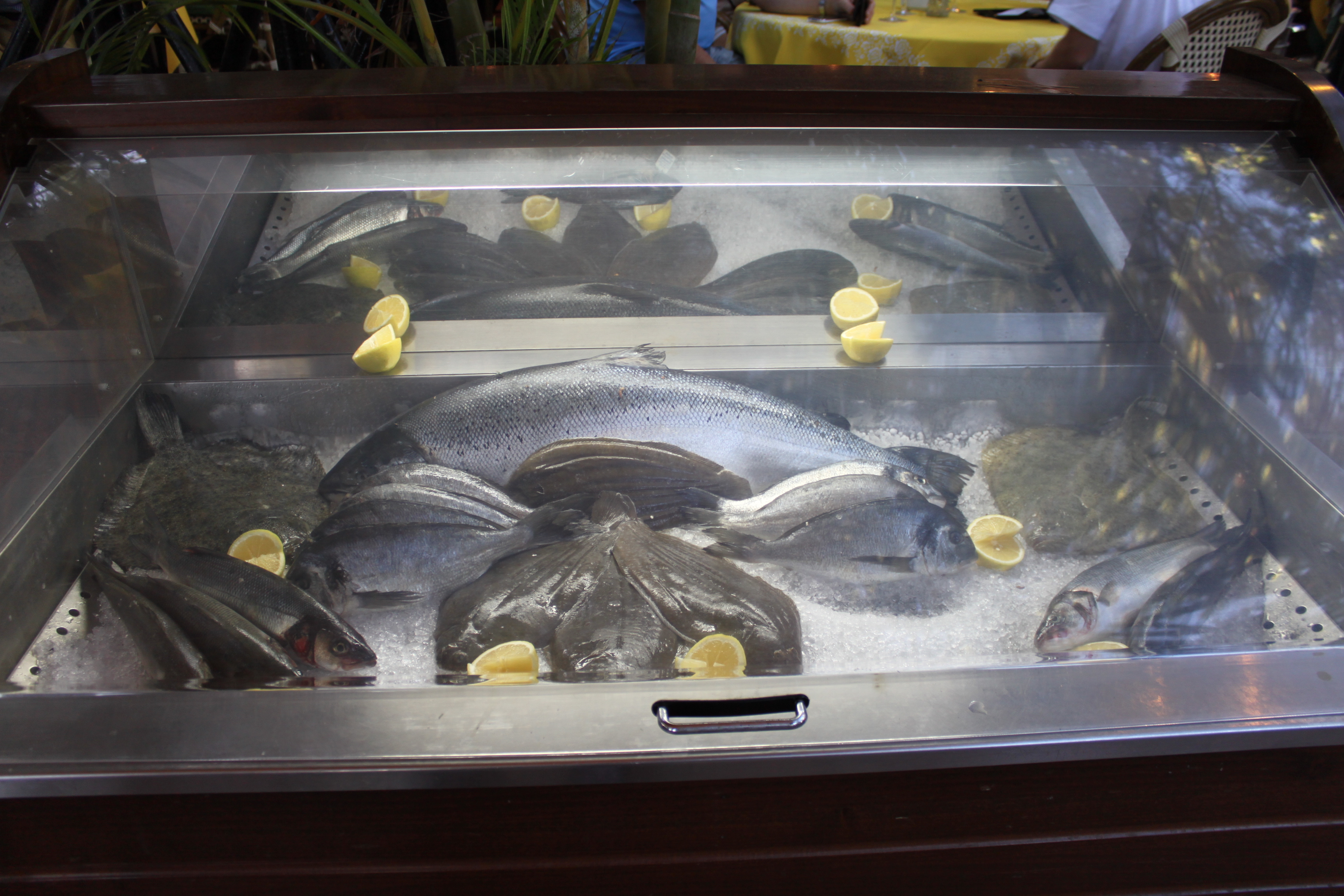 Välj ut den fisk du önskar, eller som vi gjorde, valde ett halvt kg entrecote.
