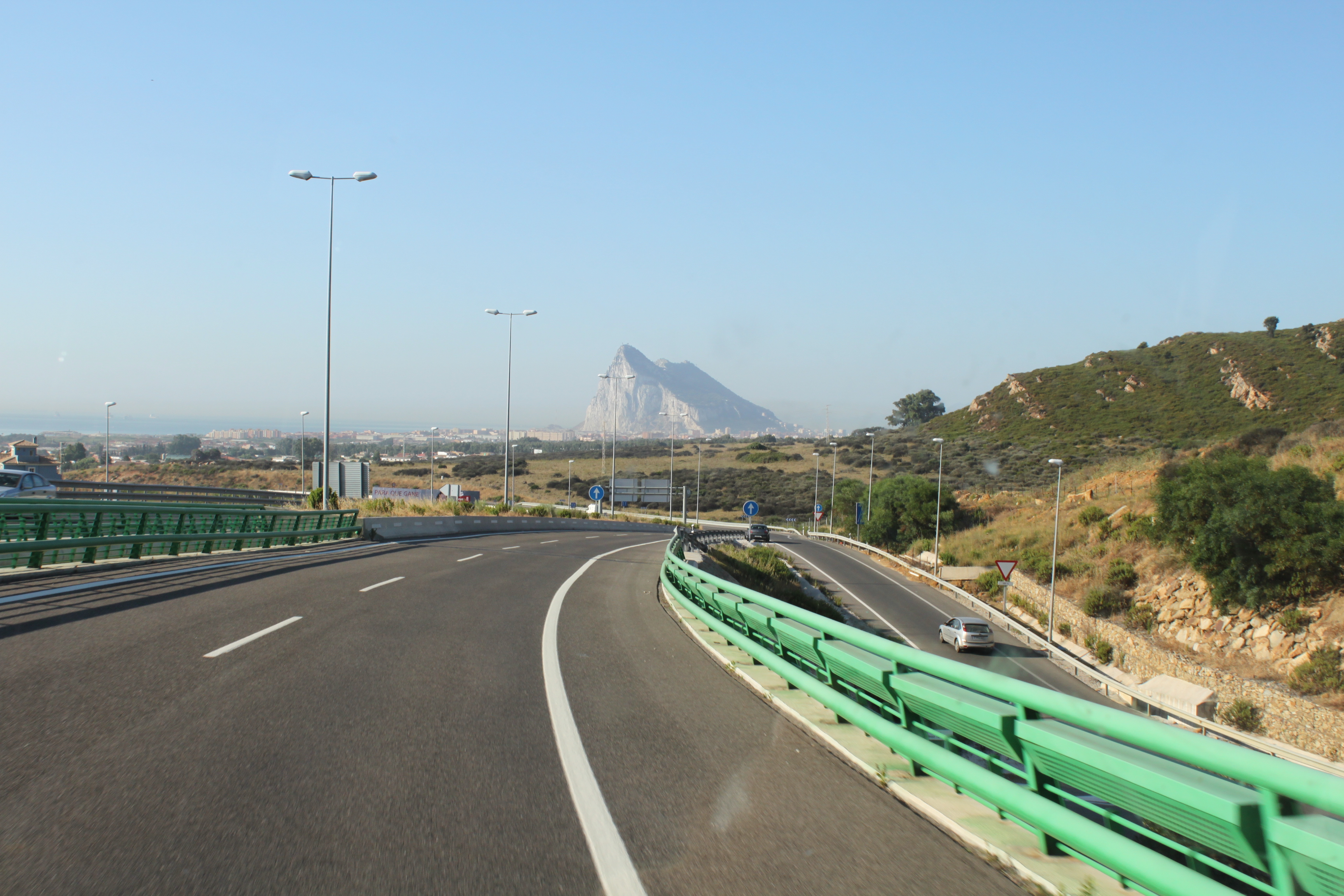 Nu skymtar vi målet för hela våra resa, Gibraltar klippan.
