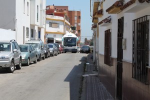 Vi går och går, vi frågar någon efter vägen, men de skakar på huvudet, engelska finns inte, ”Gibraltar finns inte”, vi försöker köpa en riktig karta, men det finns inte. Vi går igenom rena slumkvarteren med gamla ruckliga hus. Vi förstod senare att även all trafik måste igenom the Old La Linea Town, som bussen här t. ex. Efter att ha gått två och en halv timma hittar vi en gata som heter Calle Gibraltar. Vi frågar en äldre dam om vägen och hon förstod oss nog, hon pekade, hon slog med händerna, hon ojade sig och ojade sig, hon skakade på huvudet – ”Vi förstod att det var långt kvar”. Här närmar vi oss slutet av gatan och det är lite bättre hus. Förstora bilden och ni undrar om bussen kom fram, det gjorde den.