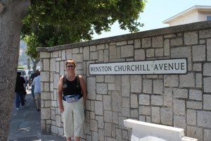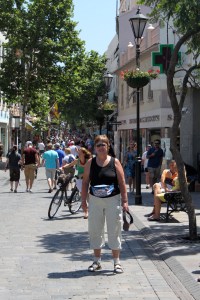 Calle Gibraltar gata var en jättelång, säkert flera km. Nu har vi gått i tre timmar (i Birgittas takt), vi har köpt vatten att dricka, men finns inte en soffa att sitta på någonstans. Äntligen ser vi målet, den brittiska flaggan tillsammans med den spanska. Vi har nått vårt mål.