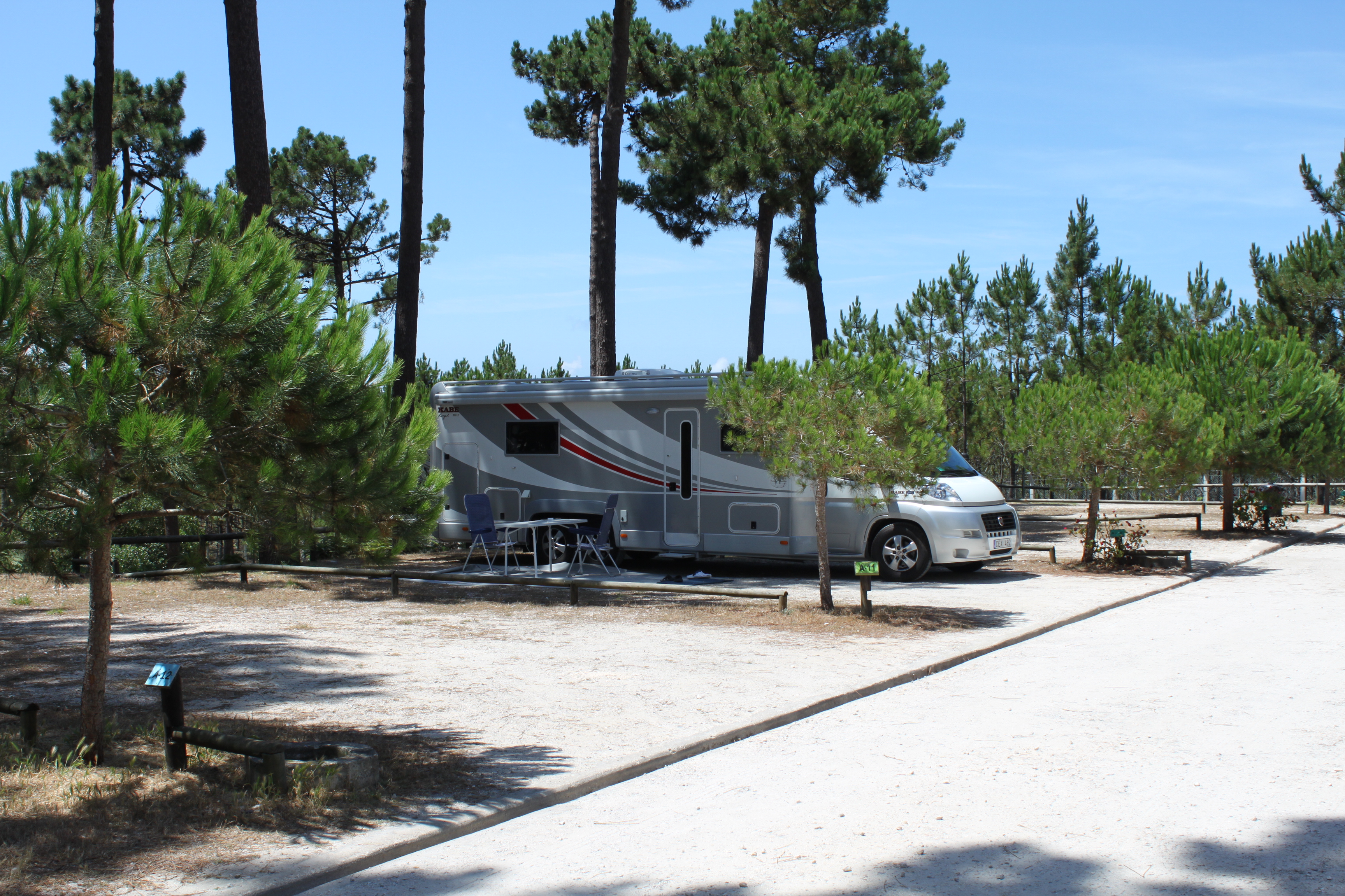 Vi hittade en riktigt bra och rymlig plats för oss. Bakom oss är en djup ”grop” med fullt av tallskog. Där bland stora tallar står en massa vagnar för säsong förmodligen. Det ser hemskt ut, helt enkelt. Vatten, el, och kemtoa tömning på varje plats där vi står. Finns dock lite misstänksamhet, man måste checka ut & in med ett kort när man lämnar eller kommer åter till området. Dessutom behöll de ett pass.