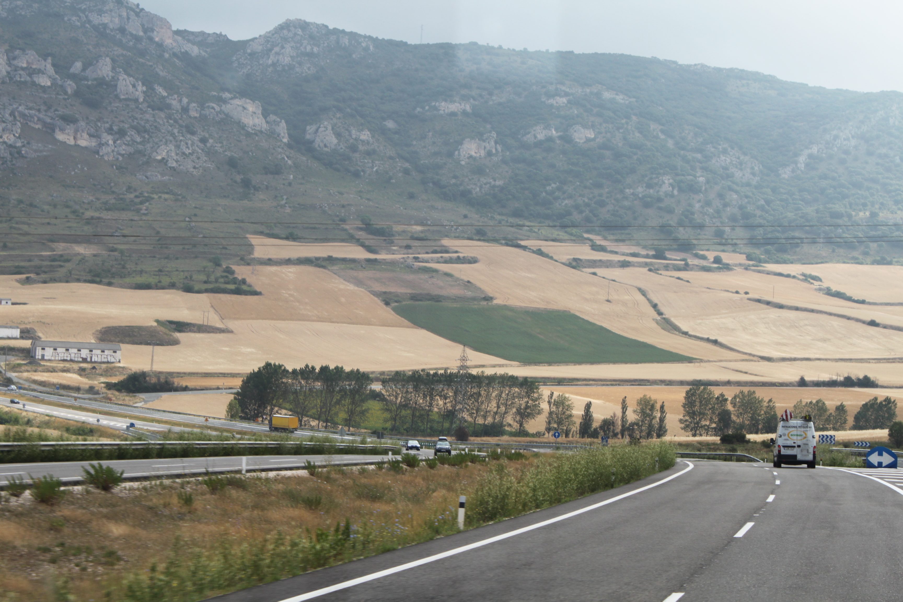 Vi lämnande Camping Kawan Village El Astral, Tordesillas, tidigt tisdag morgon. Tordesillas ligger c:a 20 mil norr om Madrid. Det var spännande att få köra tvärs över inlandet i Spanien och inte bara köra efter kusten. Tidigare har vi berättat om en massa olika fruktodligar. Här uppe i norr i inlandet är sädesfälten många gånger enorma.