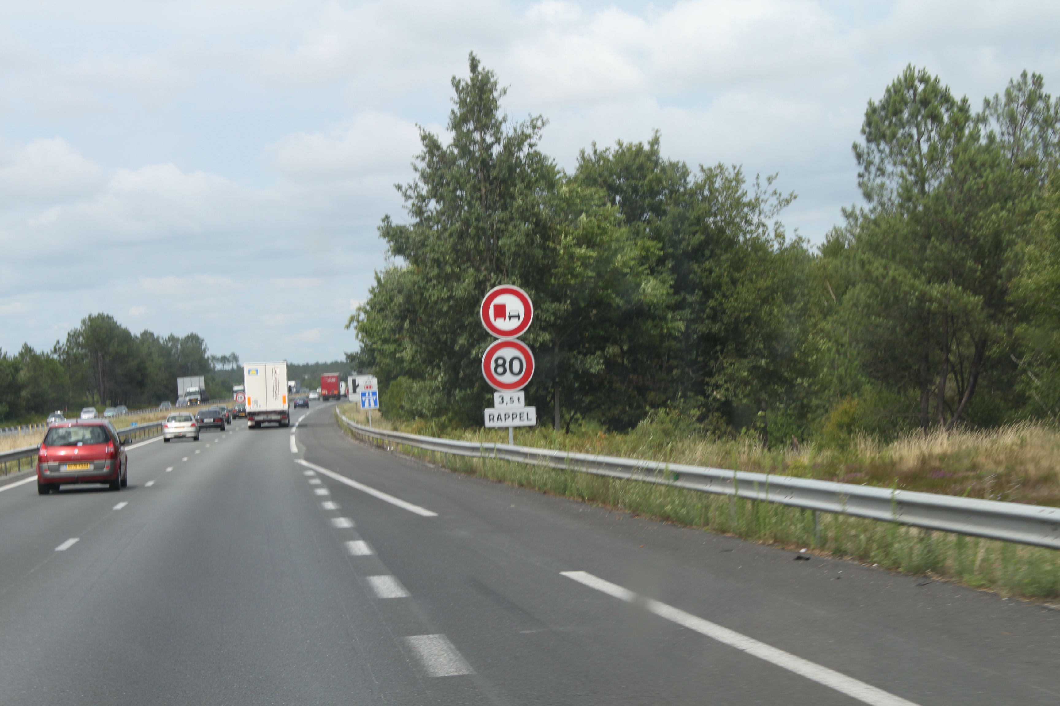 Nu blir det drygt tio mil med tålamodsprövande körning. Trots bra väg, alla bilar över 3500 kg skall köra i 80 km och får inte heller köra om. Märkligt nog efterlevs detta till 95 %. Man gäspar och gäspar och dricker vatten för att hålla sig vaken. Sedan närmar vi oss Bordeaux och då är pinan över.