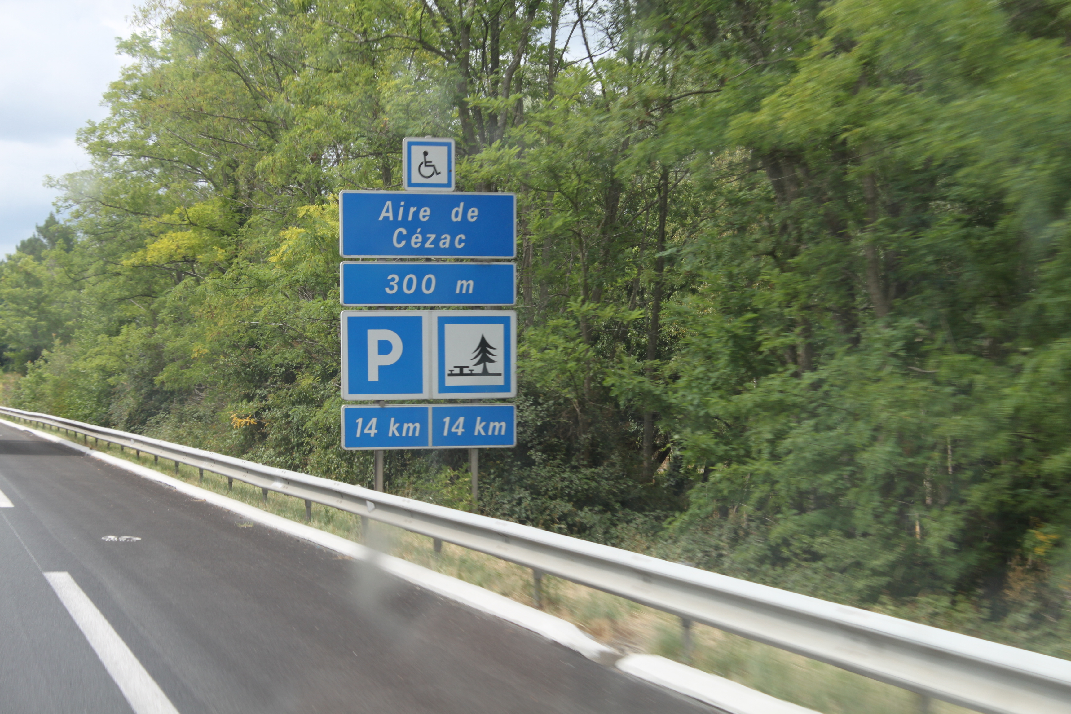 Men jag retar mig på dessa jättefula vindpinade granar på alla rastplatsskyltar i Frankrike. Inget land i världen har så fula skyltar som dessa.