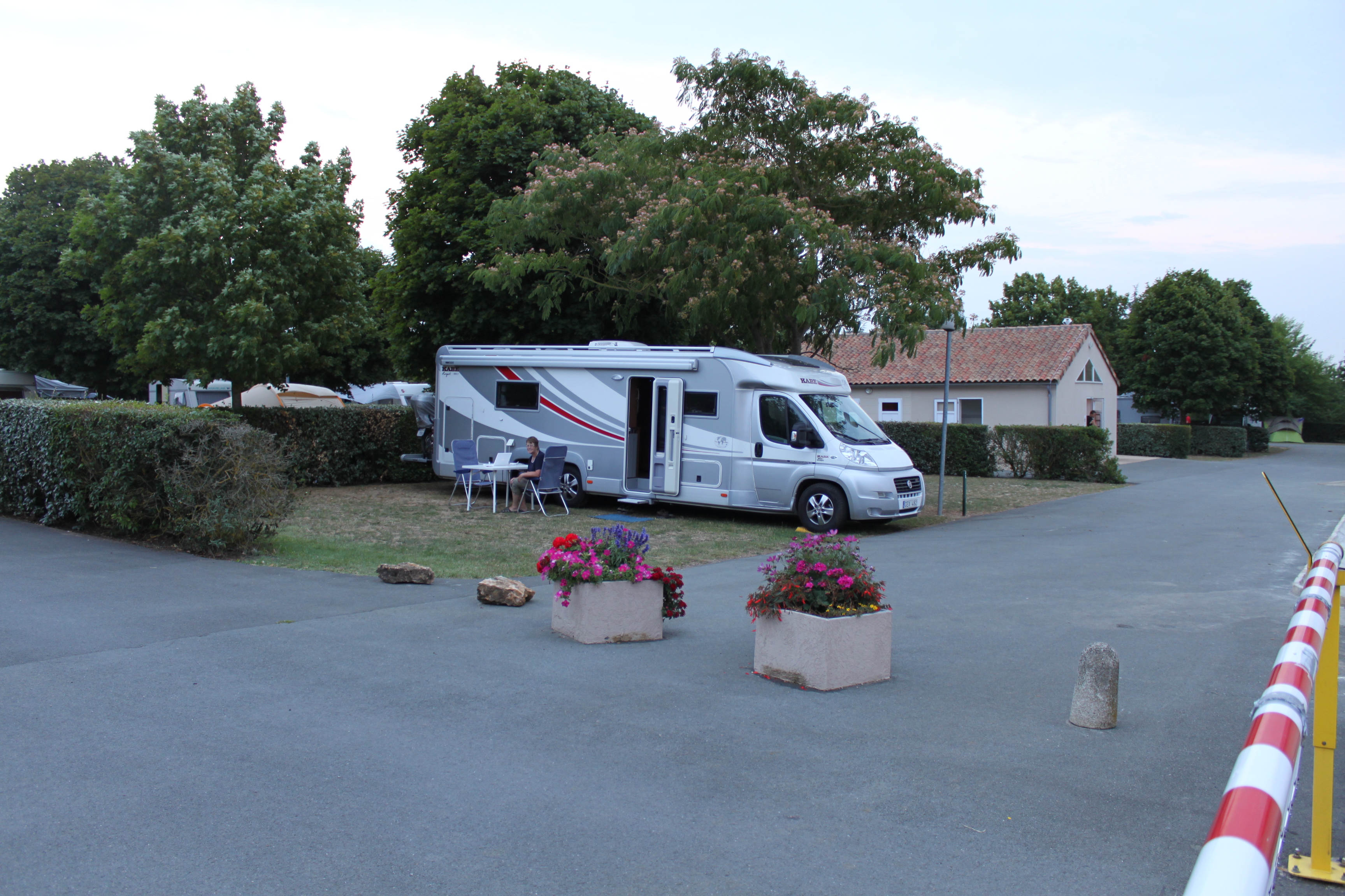 Nu har vi rullat drygt 90 mil idag och har checkat in på Camping Kawan Village Le Futuriste som ligger utanför  Poitiers eller enklare uttryckt 30 mil söder om Paris. Nu fick vi se lite utanför motorvägen i Frankrike också. Vi har nu bara cirka 190 mil hem.