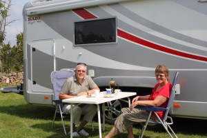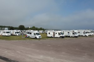 Förra gången vi kom hit i början av mars månad var vi den enda husbilen här. Jag trodde inte det skulle finnas plats till oss en sen fredagskväll i mitten av juli månad, men det gjorde det. Jag tar kort lördag morgon var min tanke, men nu när jag vaknat och ätit frukost har nog nära hälften hunnit ge sig av.