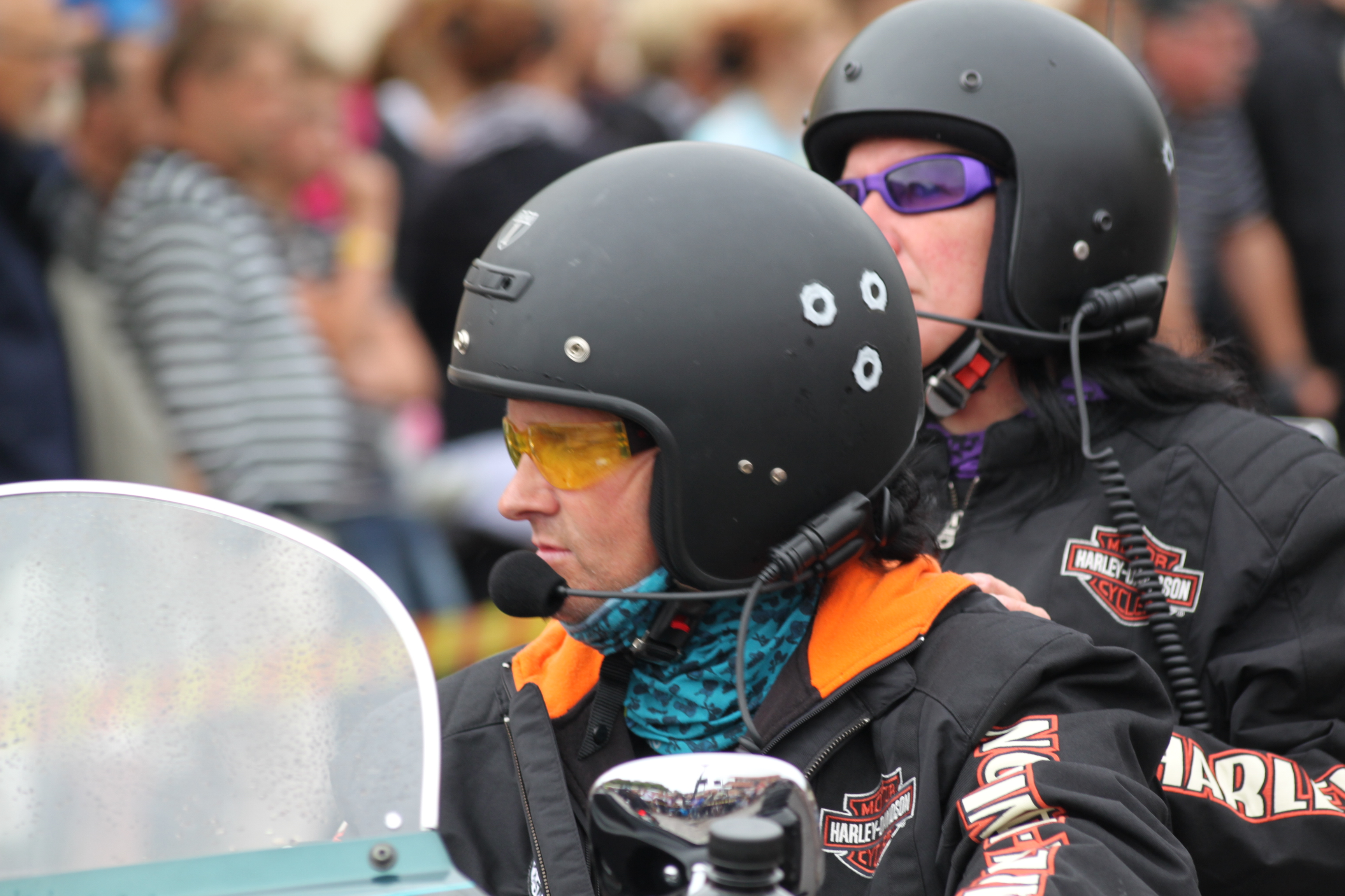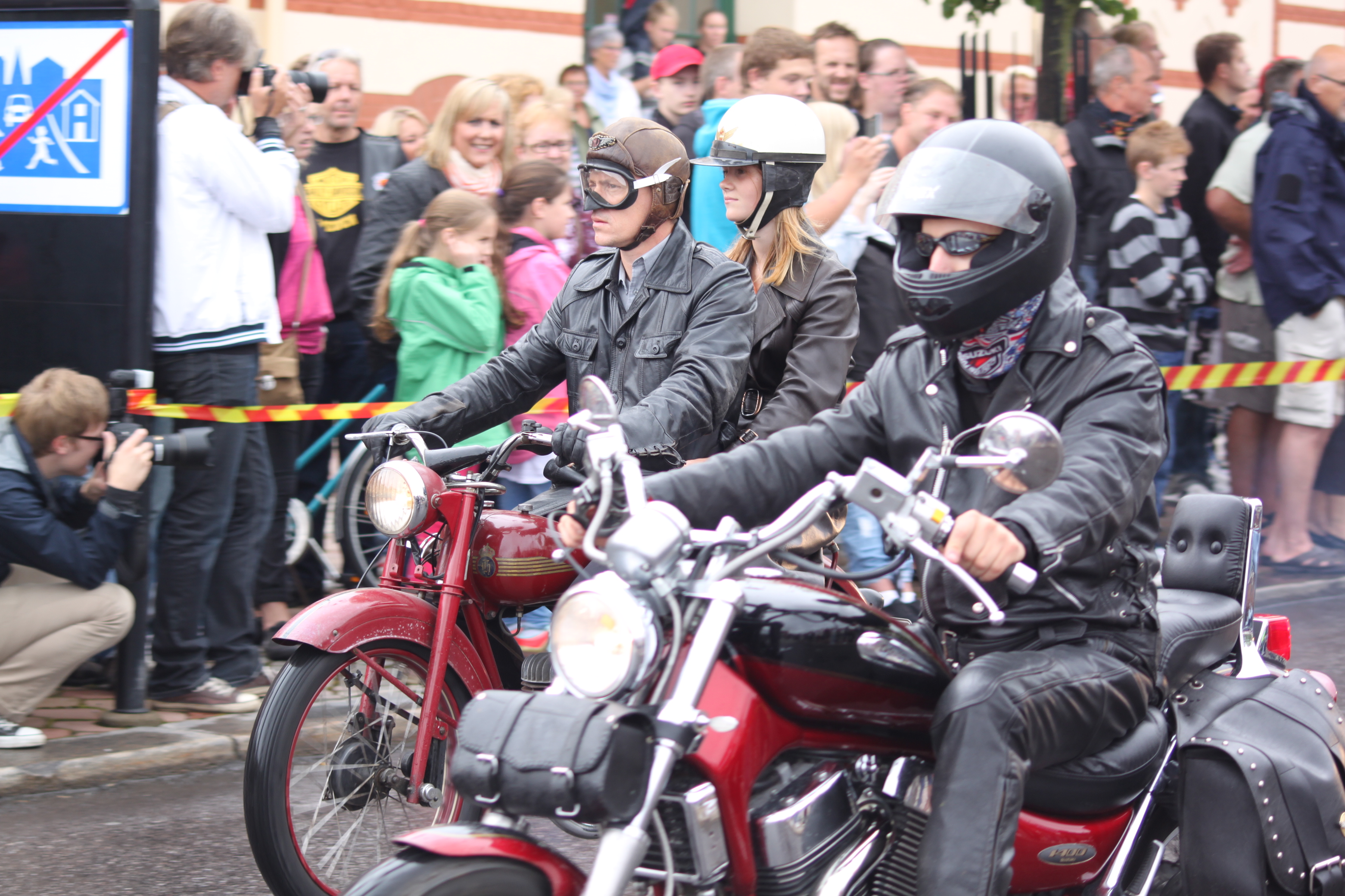 Vi bara hörde att de snackade på jobbet om MC Träff i Västervik, mer visste vi inte. Vi kom ned till Fiskartorget vid hamnen och såg en stor folksamling innanför en avspärrad gata. Vi stod där nog en timma och lyssnade till speakern som pratade om Skandiviens största MC Träff ute på Gränsö, med 4000 deltagare. Så kom kortegen….
