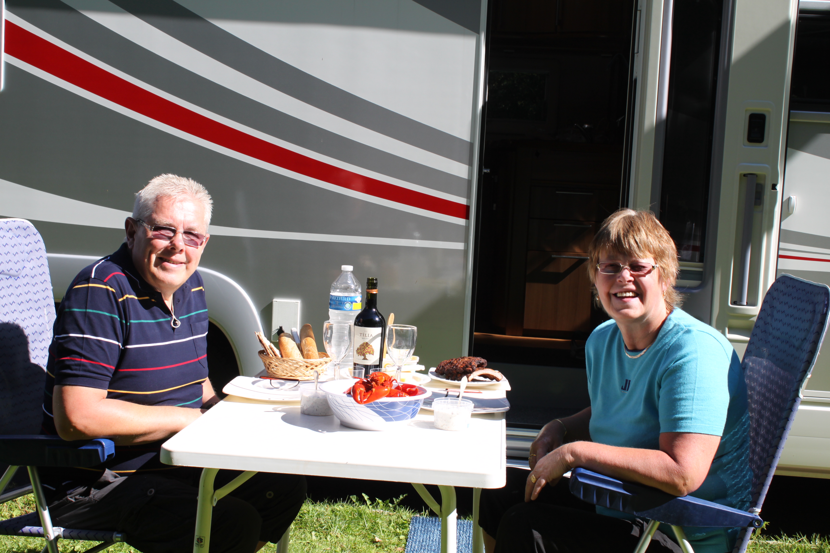 Jag tycker det var roligt att träffa en ovanligt trevlig, glad och pratsam HBK´are. Jag tycker att alldeles för många låser in sig i sina husbilar, eller drar för gardinerna när det kommer grannar. Vad kul att din bror köpt en Kabe. Hjo, vi kommer åter.