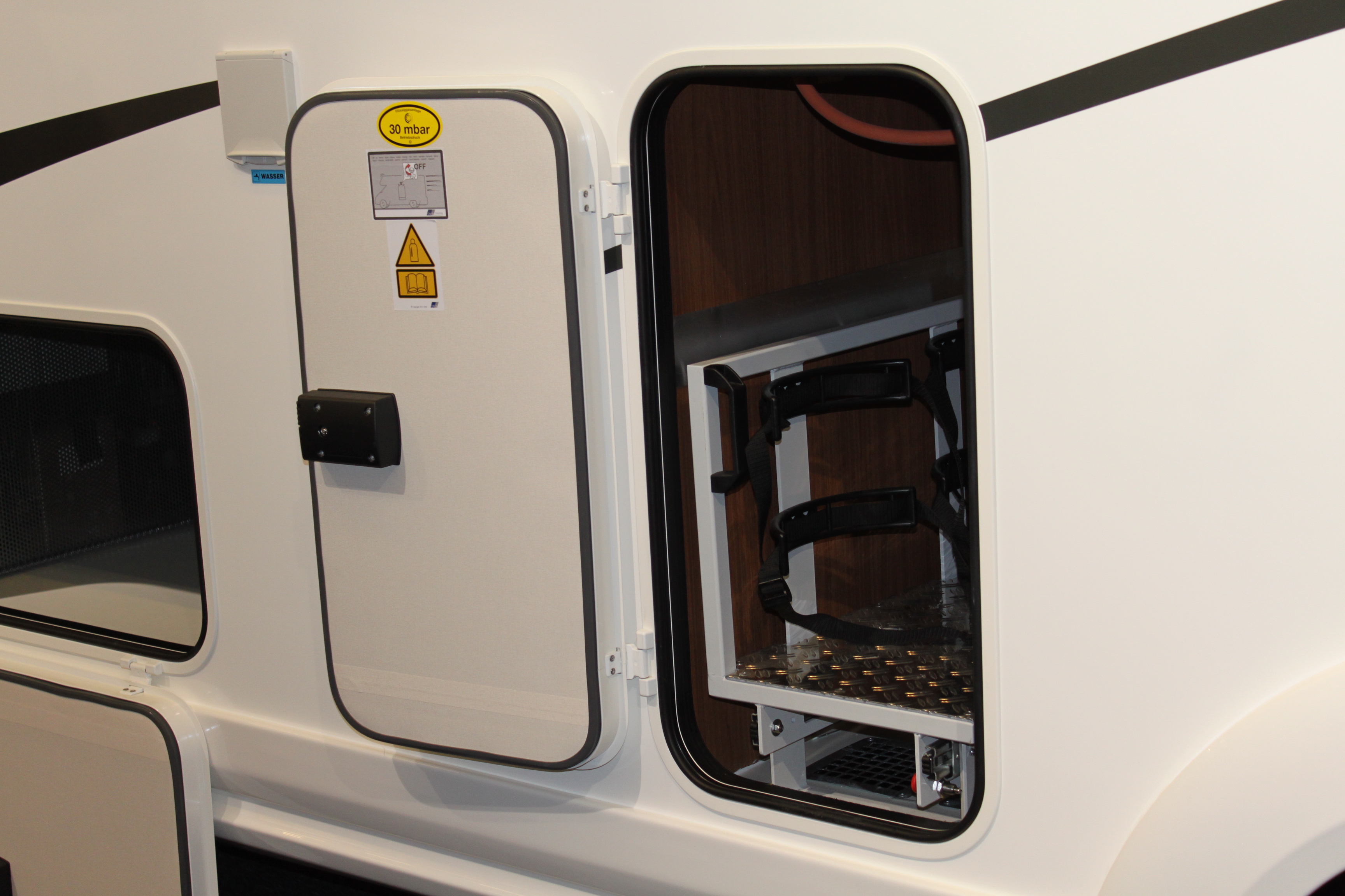 En vagn att dra ut vid byte av gasolflaska på ett av märkena. Detta borde vara standard i varje husbil.