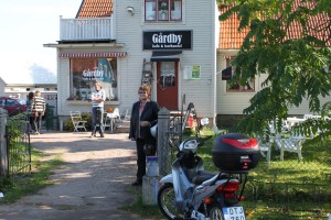 Här hos Nilsson i Skärlöv, drygt två och en halv mil norr om Ottenby, tog vår trevliga utflykt slut. Punktering på bakhjulet. Det blev några samtal till Assistanskåren och ytterligare några samtal tills vi hittade en Taxibil som hämtade upp oss efter två timmar och körde oss de sju milen tillbaka till Borgholm. Taxiresan tog en och en halv timma i den täta trafiken. Hondan fick vi kedja fast på baksidan till en lada och så körde vi den vägen hem på söndagen. Tack till Nilsson för övernattningen av Hondan och de goda bakverken vi köpte i lagården.