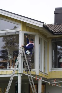 Tror du att jag tycker det är roligt att putsa fönster? frågade jag Birgitta. Allt är inte roligt, men måste ändå göras. Dessa fönster är högt placerade så de faller alltid på min lott att putsa en gång per år. Vi har haft en fönsterputsmaskin i många år och den är riktigt bra, även om man blir less på slangar som alltid är i vägen.