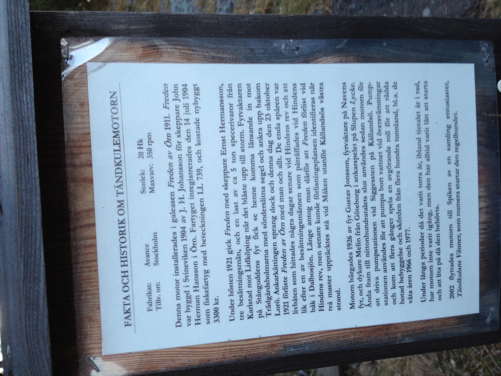 Jag glömmer aldrig ljudet från denna motor, ”Dunk………dunk….dunk…dunk..dunk, dunk, dunk…dunk….dunk…….dunk”. Den gick ned på så låga varv att man trodde den stannade vid hård belastning, för att sedan nästan hoppa iväg när belastningen släppte, ”dunk, dunk, pang, tjof, pang, tjof, dunk…dunk…”