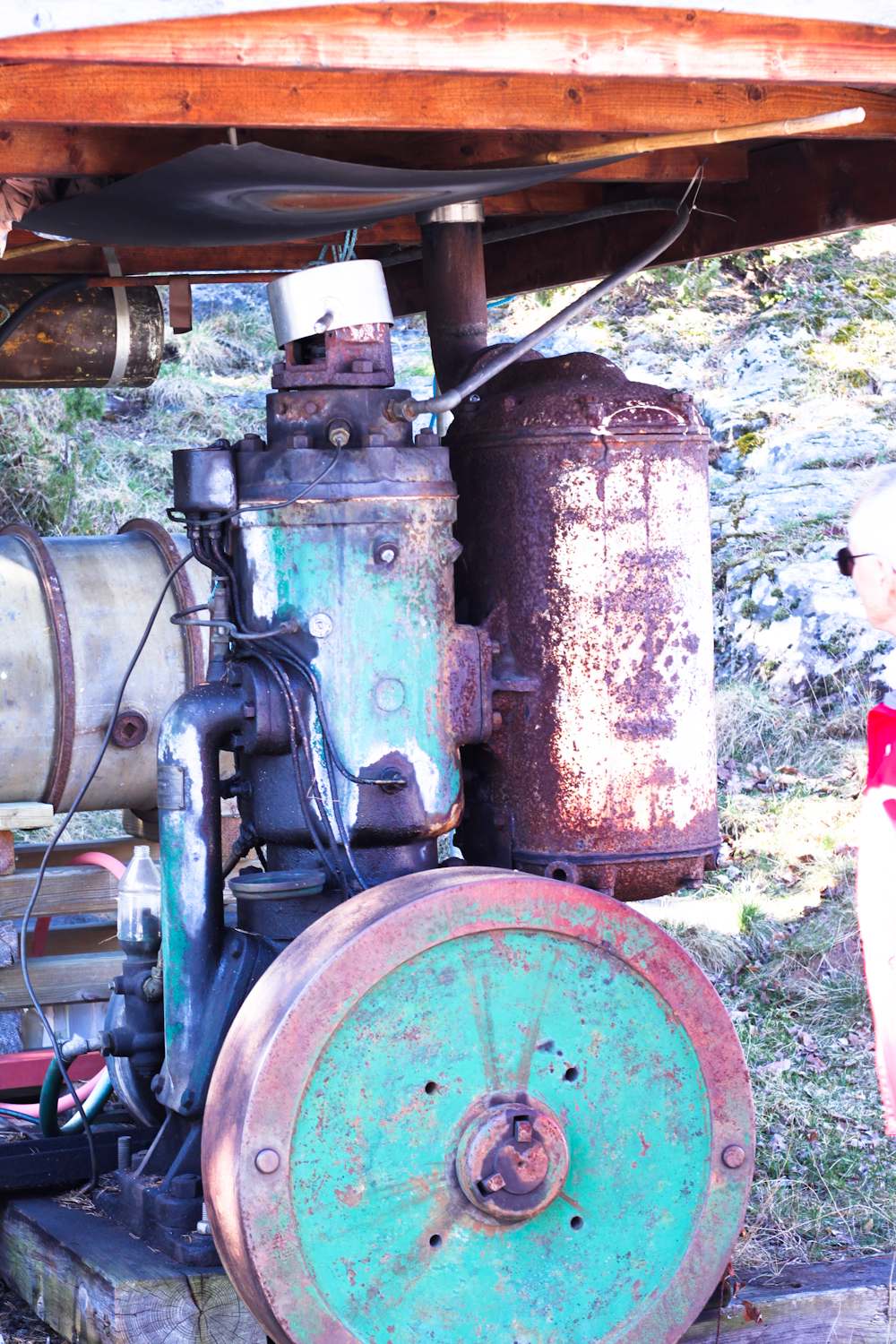 Många gånger har jag stått och beundrat denna motor. Tänk om jag någon gång fick höra dunket från den. När jag växte upp i slutet av 50- talet hade våra grannar en sådan motor till att driva en såg med samt även ett tröskverk.