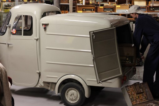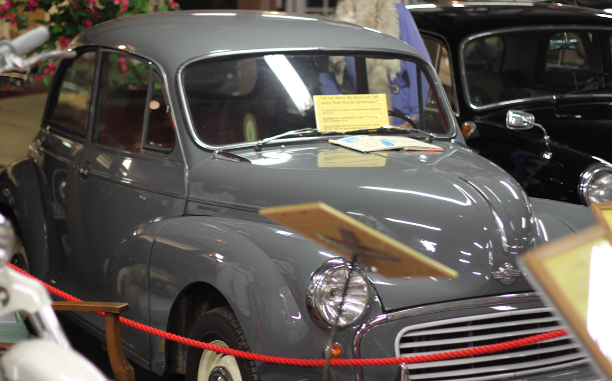 En Austin -46 polisbil, över entén till Motala Motormuséum.