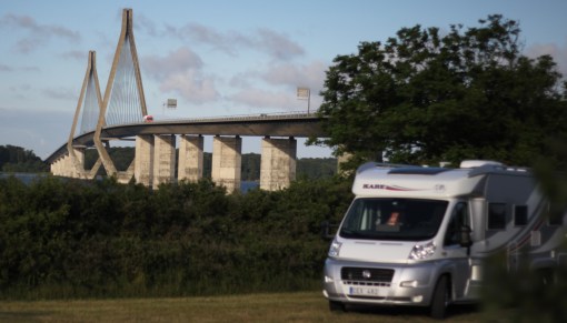 Vi låste kontorsdörren strax efter klockan 17 och lämnade hela det tunga ansvaret för företaget till vår son Niklas och teamet som jobbar just nu. Vi har åtta veckor uppdelade med semestrar för oss alla. Birgitta och jag älskar att ha tidig semester. När de stora massorna av semesterfirare kommer i mitten av juli, njuter vi av att dra hemåt. Vi kom till Møns rastplats strax före klockan 23 på onsdagskvällen. Mycket få bilar denna gång på denna utsökta rastplats. Det brukar vara 75- 80 husbilar, nu denna natt var det bara några tio- tal. Nu har vi avverkat 47 mil av 239 mil totalt till vårt resmål.
