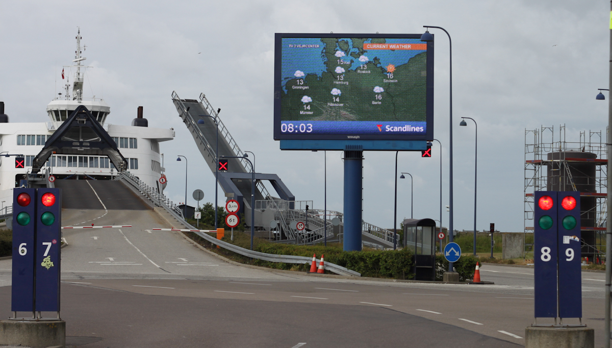 Färjeläget i Rødby torsdag morgon. (Klicka på bilden för att se vädret tydligare)