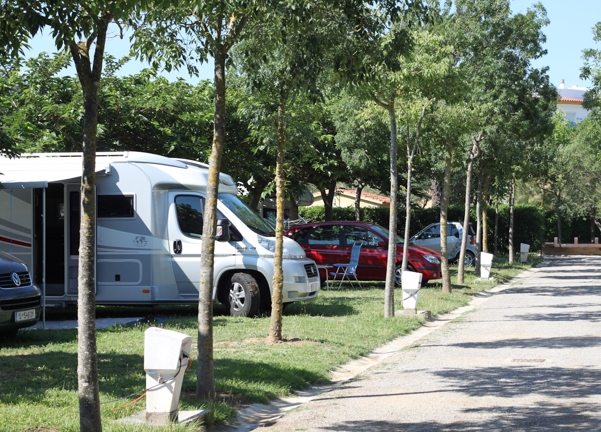 Vi valde en stor plats på 100 m”, för att det var så härligt grönt gräs på just denna tomten, dessutom har vi ryggen fri och inga vagnar bakom oss. Vi har plats nummer 11 strax intill vägen to the beach. För denna plats betalar vi 32 € per dygn. När vi stannar mer än 12 dagar så får vi 20 % rabatt på detta pris och betalar drygt 25 €.  Det tycker jag är riktigt billigt för en fyrstjärnig camping i toppklass som denna. Jag har ju skrivit flera gånger att jag tycker illa om Italien, mycket därför att wifi är besvärligt många gånger. Här betalar jag 24:70 € för 14 dagar wireless wifi. Bara starta och köra, utan minsta problem på en riktigt bra lina. ”I love Spain”.