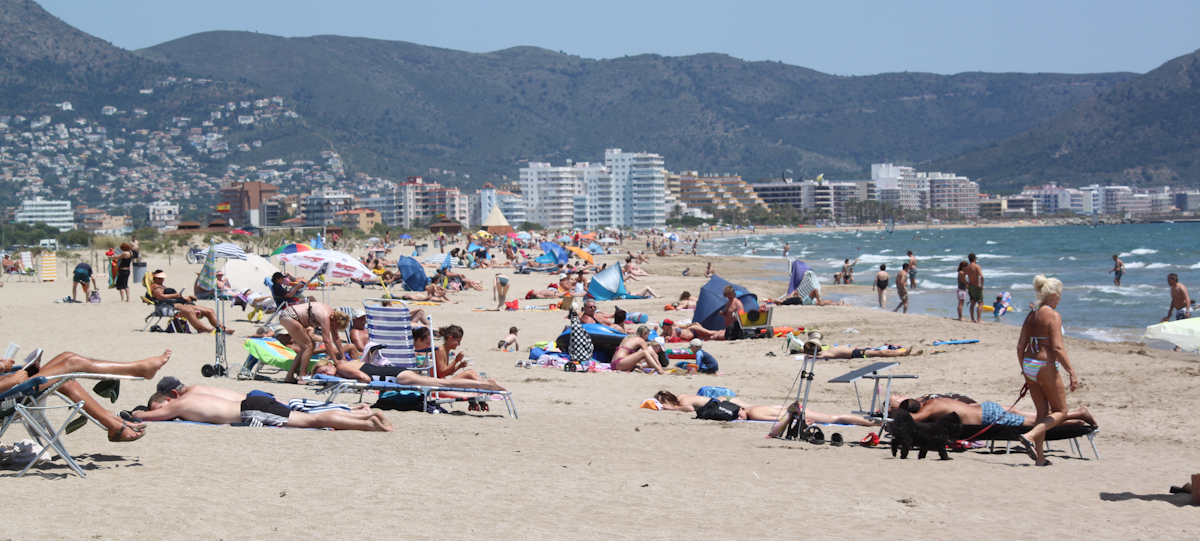 Jag har sagt och skrivit flera gånger och förundrat mig över, att vi kunde ligga på Camping Rubicone i Italien, i så många år. Det var nästan nåd att få en plats under ett parasoll nere vid Adriatiska havet. Var man ute i havet och var borta för länge, tog vakterna kläder och allt och tömde platsen. Dessutom hade man max 4 m2 tilldelat. Med andra ord, man låg som sardiner i en sardinburk. Å andra sidan träffade vi vänner för livet, så allt var inte negativt med denna camping. Här på stränderna på Costa Brava kusten har man gott om plats och ett underbart Medelhav.