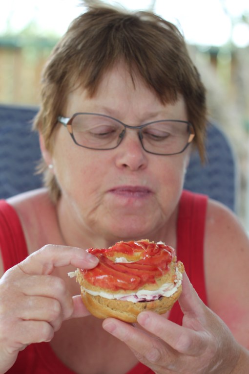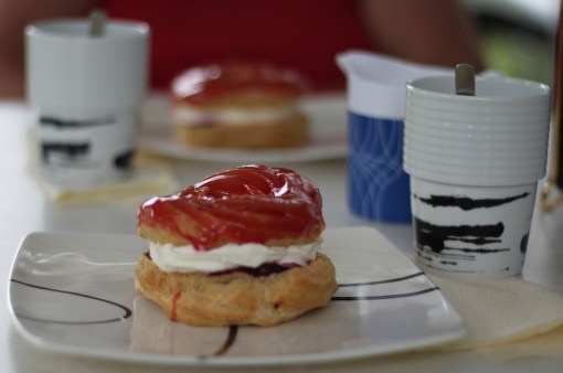 Vi älskar att prova på alla goda bakverk vi ser. Fast denna var verkligen annorlunda. På utseendet att döma kunde man tro att den var gjord på en frukostfralla, men så var det inte, utan en grövre mördeg av något slag.