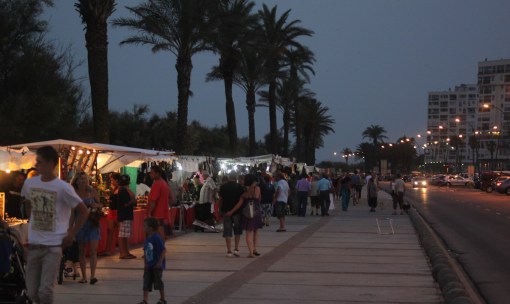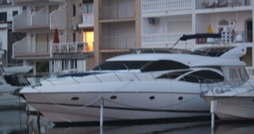 Jag hittade en ”Agenda” på nätet över saker och ting som händer i Empuriabrava under juni och juli månad. Bland annat stod det, att det var ”Market” mellan klockan 18.00 till 24.00, från och med den 30 juni under alla dagar. Dock stod det inte var. Vi gick ned mot andra sidan hamnpiren där vi inte varit innan. Förlåt skärpan som inte är fullgod på alla kort. Det skymde fort och mitt stativ låg hemma.