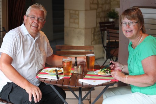 Först en stor jättegod salladstallrik inklusive en jättegod paj, sedan en stor portion kalkon med pommes och till dessert en stor chokladbakelse. Alltsammans inklusive två 50 cl öl kostade bara 28 €.