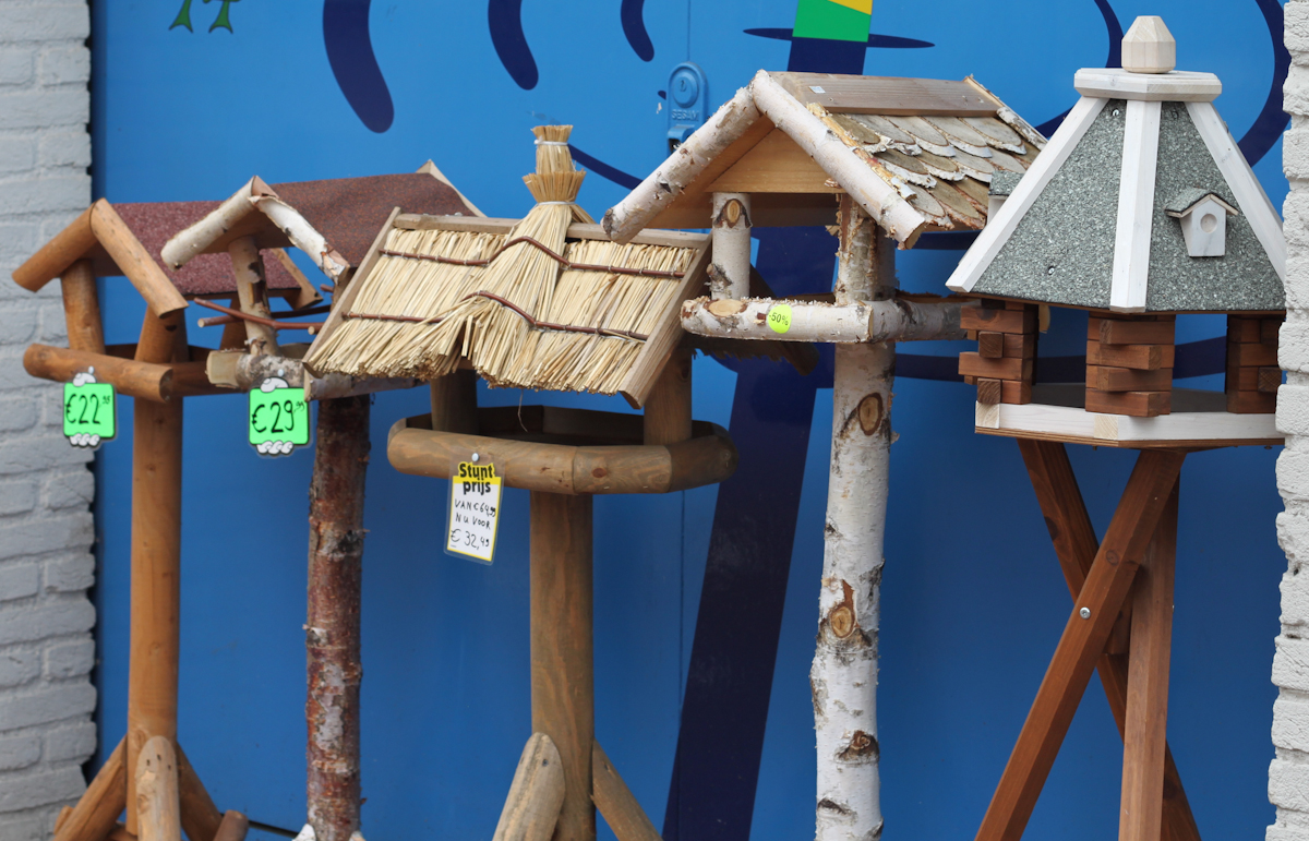 Oh så fina bilder, pumpen skulle jag gärna ta med hem, tidningsgubben, också kul. Fågelborden alldeles för dyra, konstigt att alltid när det är någon form av hantverk är det dyrt. Sint-Oedenrode var okänt för oss, men ser intressant ut. Varmt -19 gr men molnigt här hemma, så ta det lugnt.