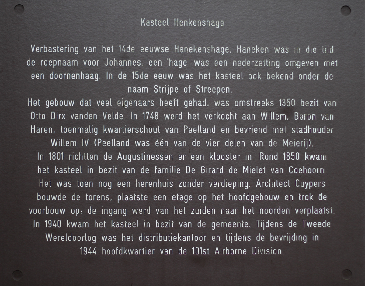 Sedan april 1940 ägs av kommunen Henkenshage Sint-Oedenrode . Slutet av femtiotalet, en av