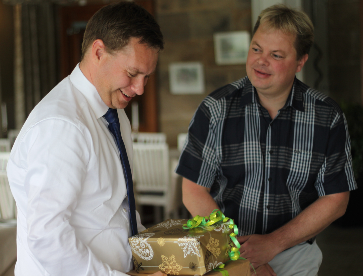 Paket överlämnades naturligtvis av bland annat vår son Niklas till 40- åringen.