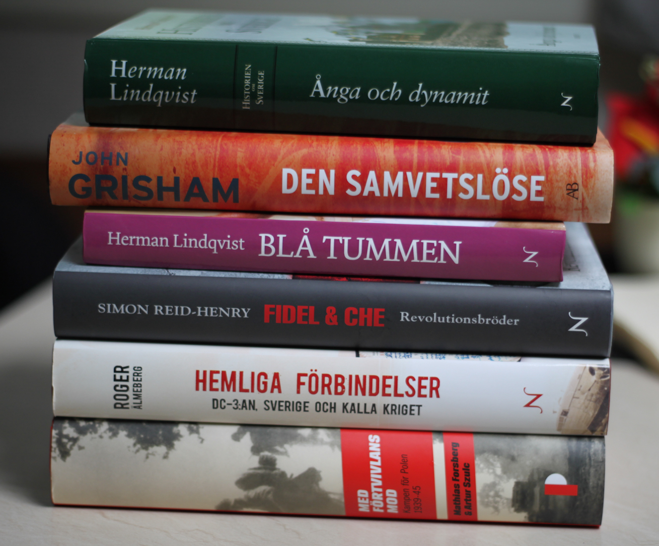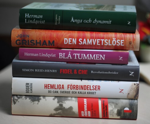 Sex styck böcker, det kommer att räcka minst ett år framåt. Jag frågade, varför så billigt? Vi köper restpartier, fick jag till svar. Dock verkar en del av dem ganska nytryckta.