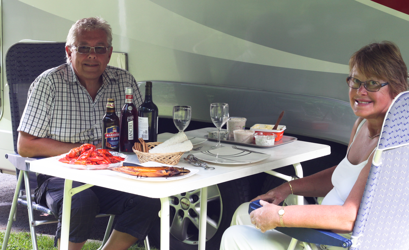 Vi kunde avnjuta våra kräftor i strålande solsken.